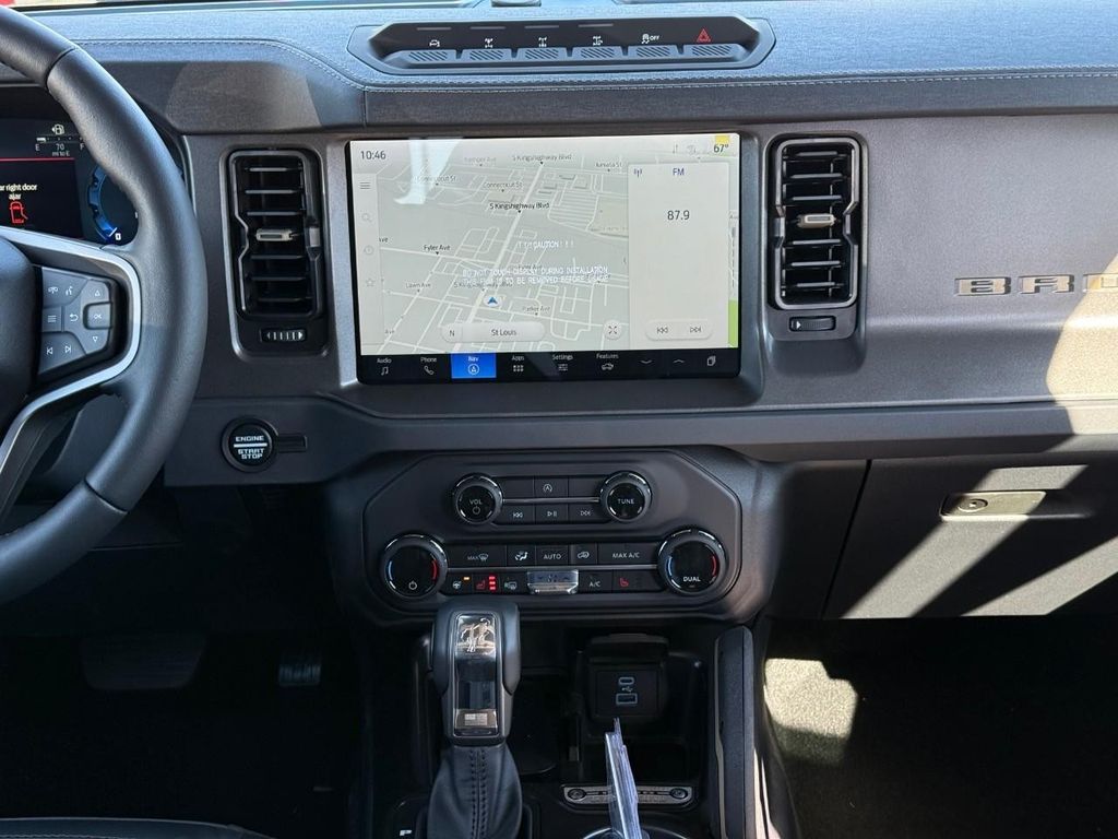 This Ford Bronco's Cross-Traffic Alert: Safeguarding you from unexpected traffic when reversing. Start it from inside with remote start. The leather seats in this vehicle are a must for buyers looking for comfort, durability, and style. Keep your hands warm all winter with a heated steering wheel in this 1/2 ton suv . See what's behind you with the back up camera on this Ford Bronco. An off-road package is equipped on this vehicle. The Ford Bronco offers Apple CarPlay for seamless connectivity. The rear parking assist technology on this 1/2 ton suv will put you at ease when reversing. The system alerts you as you get closer to an obstruction. Enjoy the heated seats in this unit you will never buy a vehicle without them. Everyone loves the comfort of having a warm seat on those cold winter days. It features a hands-free Bluetooth phone system. This vehicle offers Android Auto for seamless smartphone integration.
