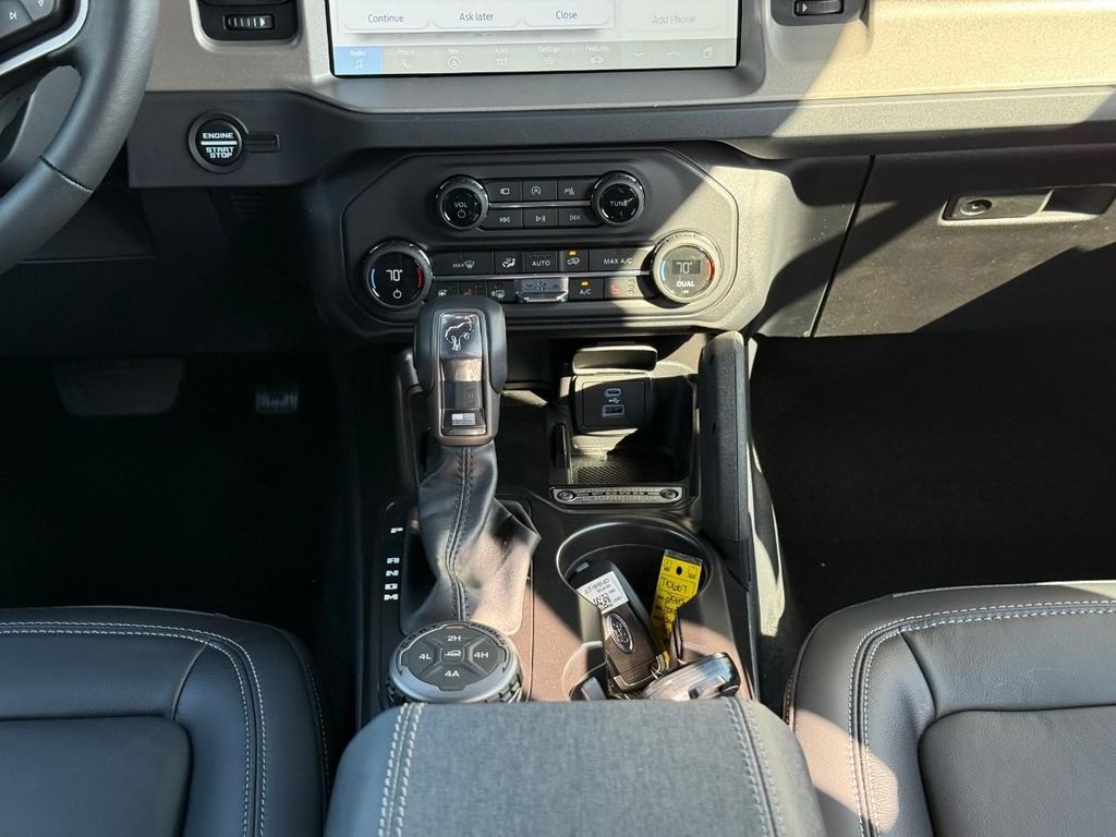 The vehicle's Cross-Traffic Alert: Safeguarding you from unexpected traffic when reversing. The state of the art park assist system will guide you easily into any spot. This 1/2 ton suv has auto-adjust speed for safe following. Protect the Ford Bronco from unwanted accidents with a cutting edge backup camera system. It comes equipped with Android Auto for seamless smartphone integration on the road. You'll never again be lost in a crowded city or a country region with the navigation system on this 1/2 ton suv. An off-road package is installed on it so you are ready for your four-wheeling best. This model features a hands-free Bluetooth phone system. This model is pure luxury with a heated steering wheel. This Ford Bronco offers Apple CarPlay for seamless connectivity. Never get into a cold vehicle again with the remote start feature on the vehicle. The leather seats in the vehicle are a must for buyers looking for comfort, durability, and style.